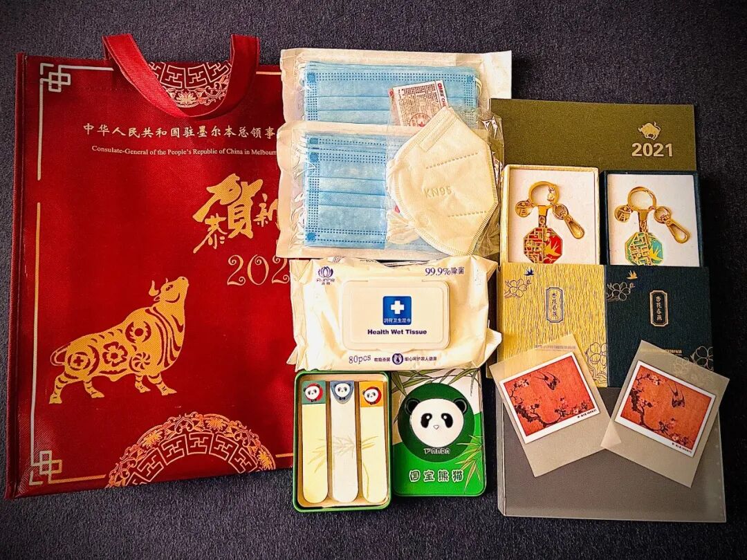 此次春节福袋是由中国驻墨尔本总领事馆,在疫情这种特殊情况下,为了能让留在澳洲学生们同样感受到国内春节的氛围而准备的。