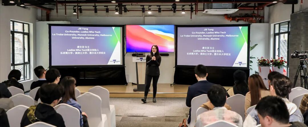 我们的校友Jill Tang,Ladies Who Tech联合创始人,为开幕式做了演讲!