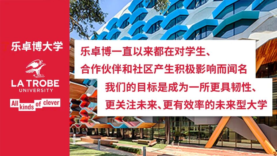 因此,让我们的新一代留学生能够充分“与行业互动(industry connected)”,并“为未来职场做好准备(career ready)”是乐卓博作为一所着眼于未来的大学,一直以来的目标。根据最新的QILT报告,乐卓博毕业生的雇主满意高达86.3%;维州硕士全职和整体就业人数排名第一;同时,乐卓博毕业生还被雇主评为维州最具创新以及最具适应性的人才。