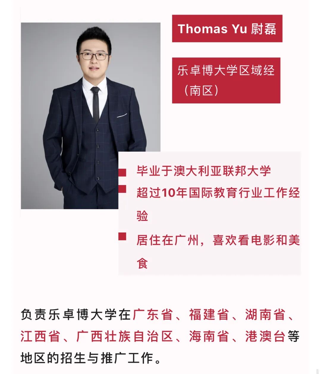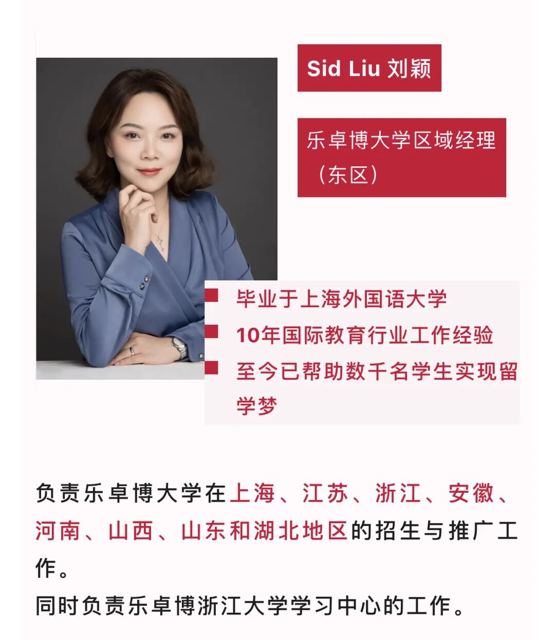 不论您是想了解入学事宜、奖学金、乐卓博课程设置、亦或是乐卓博在中国的合作计划,您都可以咨询对应地区的招生官!