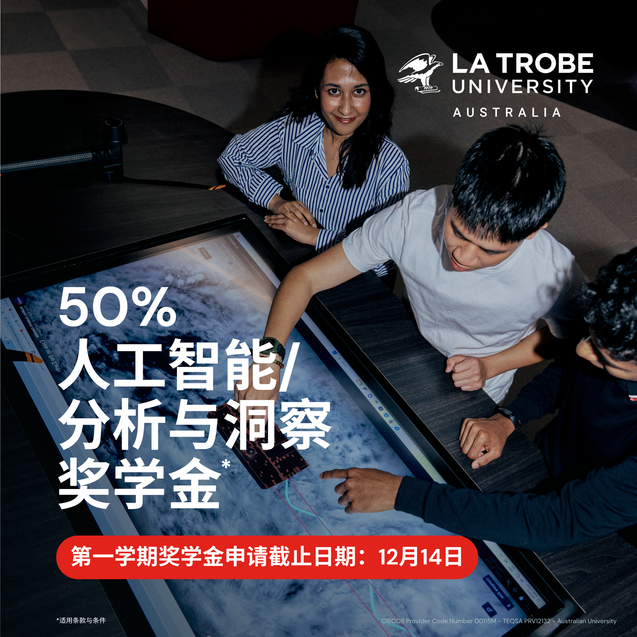 为了培养未来科技创新人才,我们推出人工智能/分析与洞察奖学金,面向申请相关课程的国际学生,提供50%学费减免。