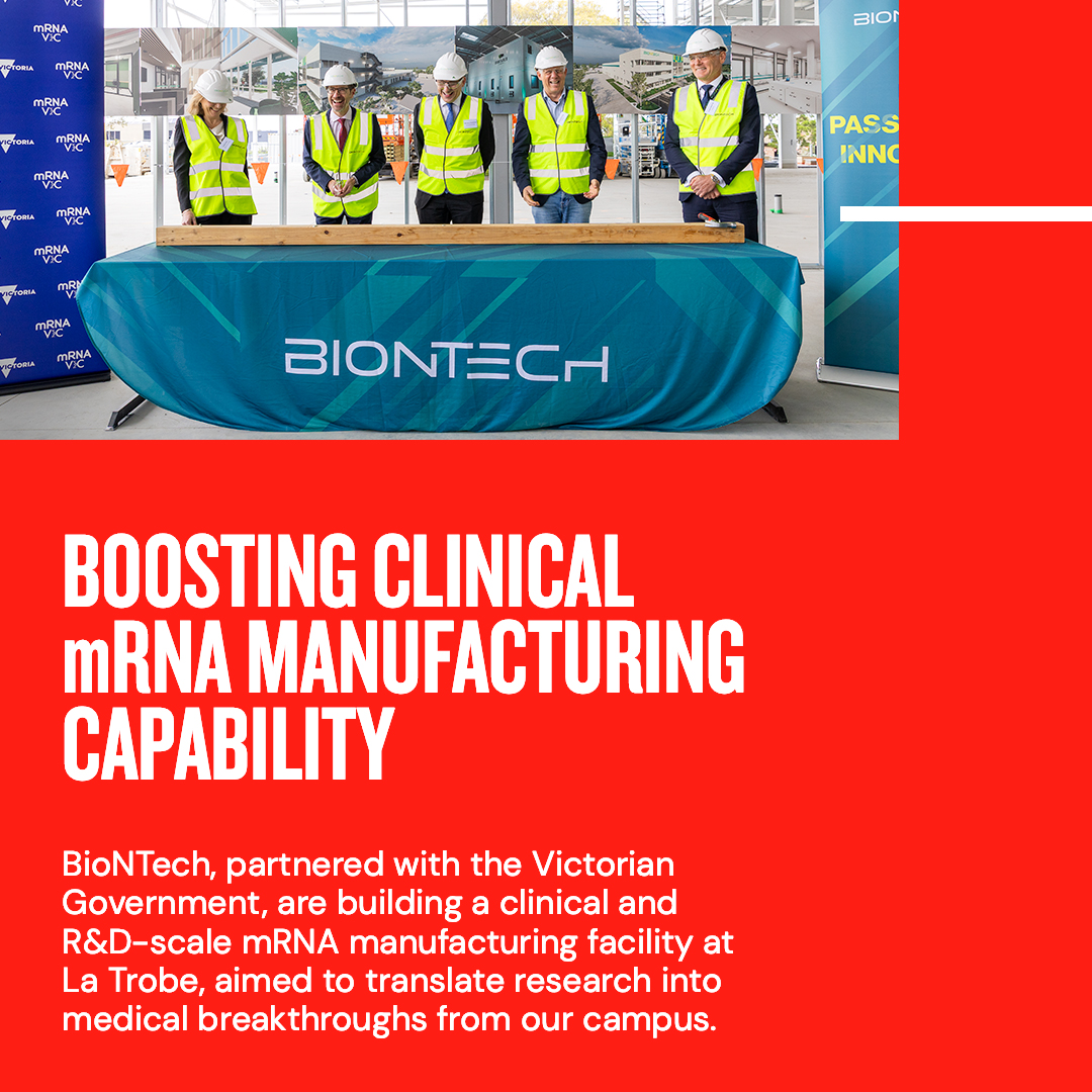 全球领先的生物技术公司BioNTech已在乐卓博大学正式启用其全新的mRNA研发生产设施(BioNTech R&D Facility)。与此同时,一座先进的临床级mRNA生产设施也将在墨尔本主校区启动建设,为未来的医学创新奠定坚实基础。